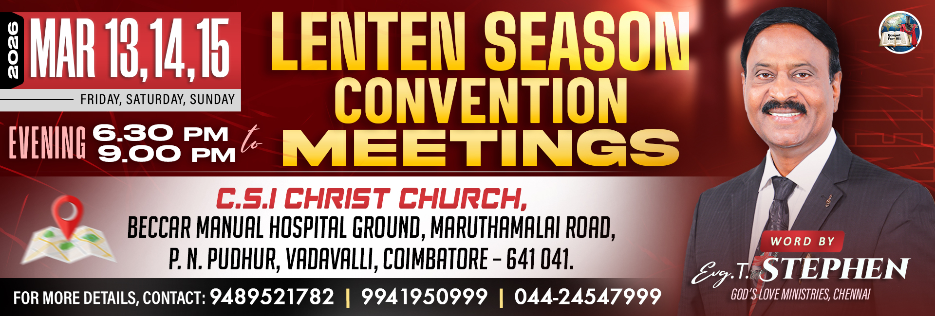 Register online to meet Bro. T. Stephen in Chennai @ God's Love Ministries Office.