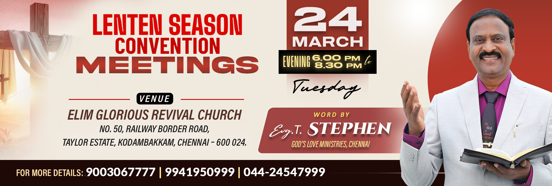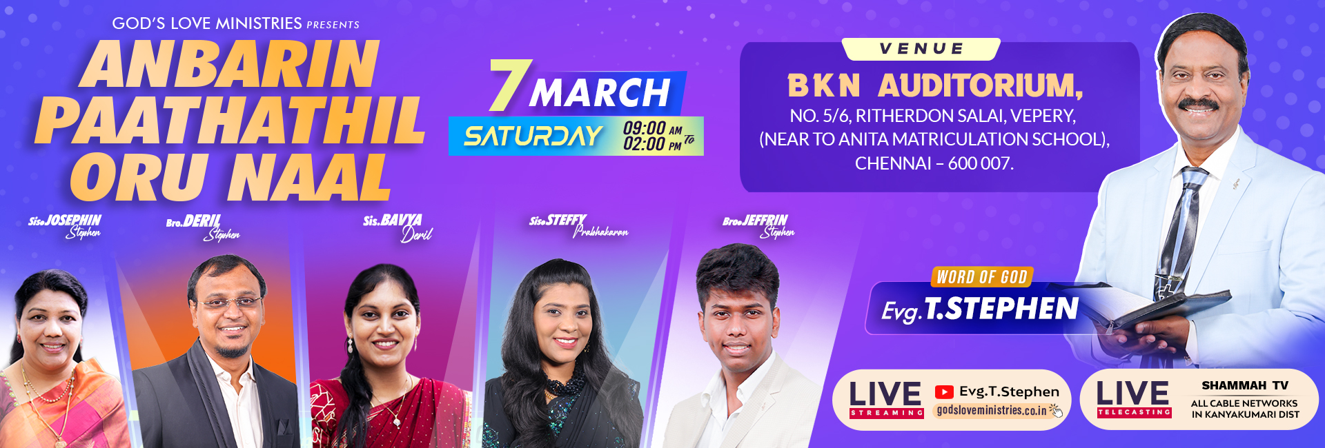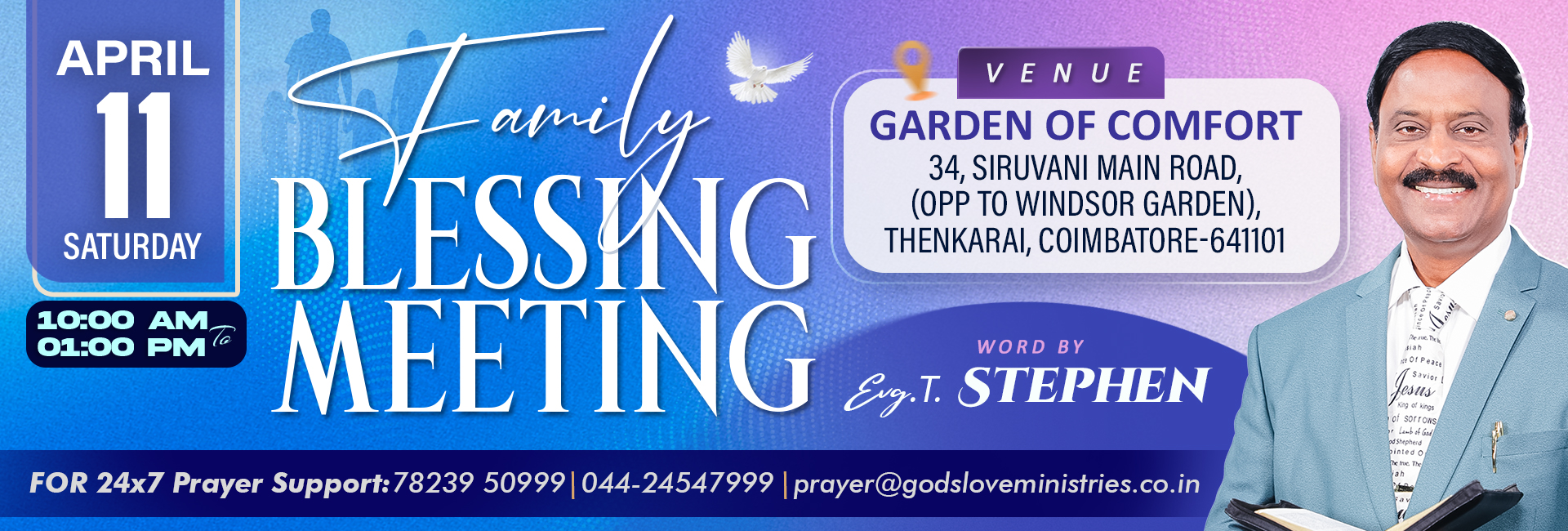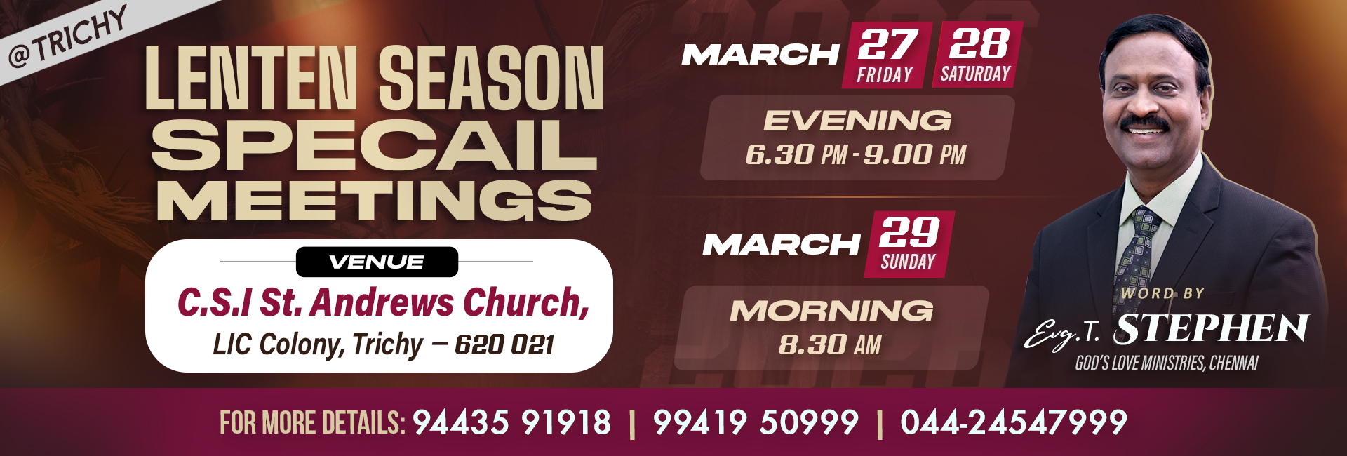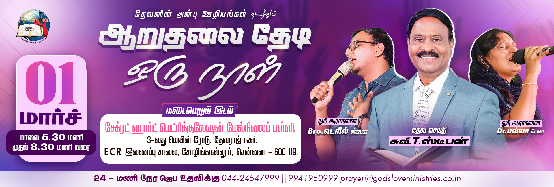 Register online to meet Bro. T. Stephen in Chennai @ God's Love Ministries Office.