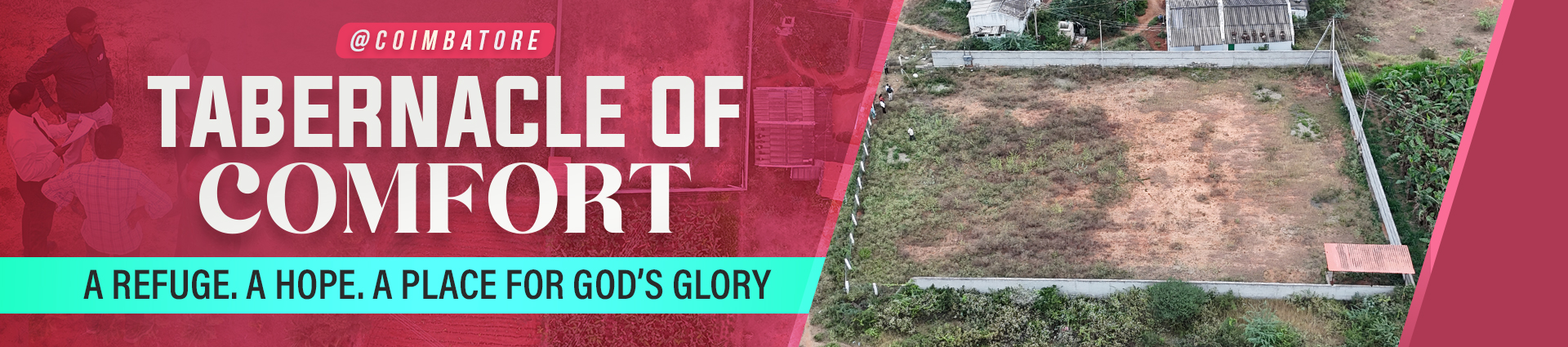 By God’s abundant grace, we are glad to inform you that we have identified a suitable land at Chinna Thadagam, Coimbatore, for establishing the Tabernacle of Comfort. Until now, our ministry has been functioning in rented premises, and by God’s grace, the ministry has been growing steadily, with multitudes attending the blessing meetings.