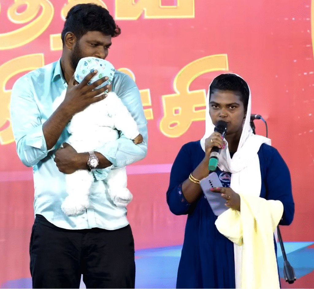 Praise be to the Lord. We had been married for 3 years but had not received the blessing of a child. We went to many hospitals and took several treatments, but all our efforts failed. Finally, my husband and I decided that we would not take any more medical treatment — prayer alone would be our only way. We attended the Anbarin paathathil Oru Nall Fasting Prayer and, at the end of the meeting, we prayed personally with Brother Stephen. After that prayer, the Lord performed a miracle. I conceived and later delivered a beautiful baby boy.