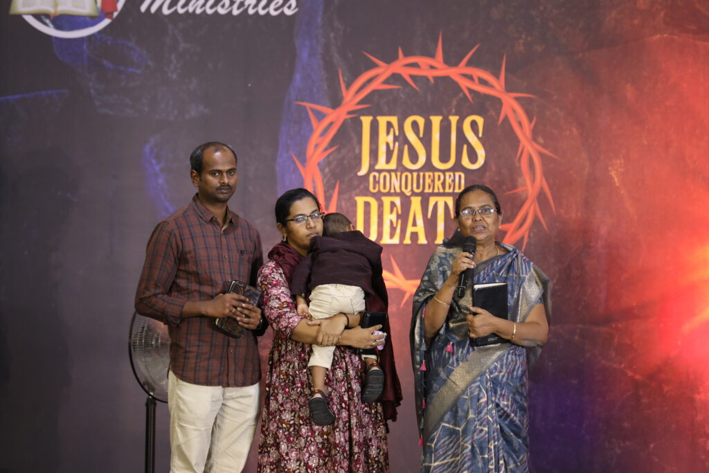 Praise be to the Lord! My daughter-in-law’s name is Veni. Even after 5 years of marriage, she did not have a child. Every month she suffered from severe abdominal pain, similar to labor pain. When we went to the hospital, after examination, the doctor said there were 5 fibroid tumors in the uterus. They said that if surgery was done, there might be a chance for a child. Accordingly, surgery was performed, but only 2 fibroids were removed. The doctors then said that 3 fibroids were still remaining, another surgery would be required, and even then there would be only a 20% chance of conceiving. In that situation, I came to know that Brother Stephen was preaching God’s Word and praying in the Valliyur area (Veppilangkulam), and I attended the meeting. While delivering God’s Word, Brother Stephen said that the Lord was making him speak about uterine fibroids, explaining how painful they are, and he prayed especially for those suffering from it. During the personal prayer, he said prophetically, “Daughter, you have come asking whether the Lord has forgotten you and whether He will not open a door for your children. The Lord is opening many doors. He has already placed a child in your daughter-in-law’s womb,” and he prayed. I immediately informed my daughter-in-law over the phone. At that time, she was already experiencing a delay in her menstrual cycle. Later, when she went for medical tests, the Lord fulfilled exactly what His servant Brother Stephen had spoken—my daughter-in-law was pregnant.By the grace of God, she later delivered a beautiful baby boy.